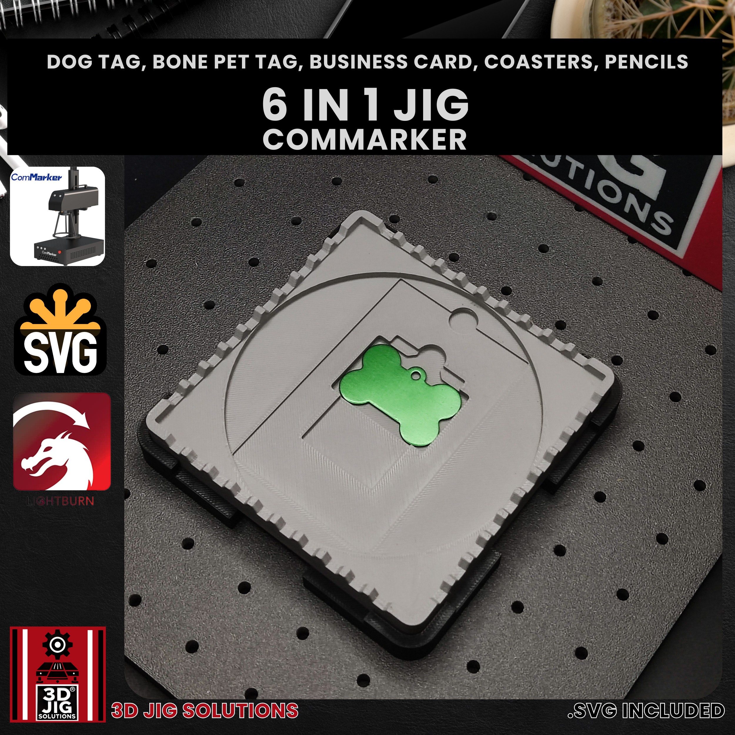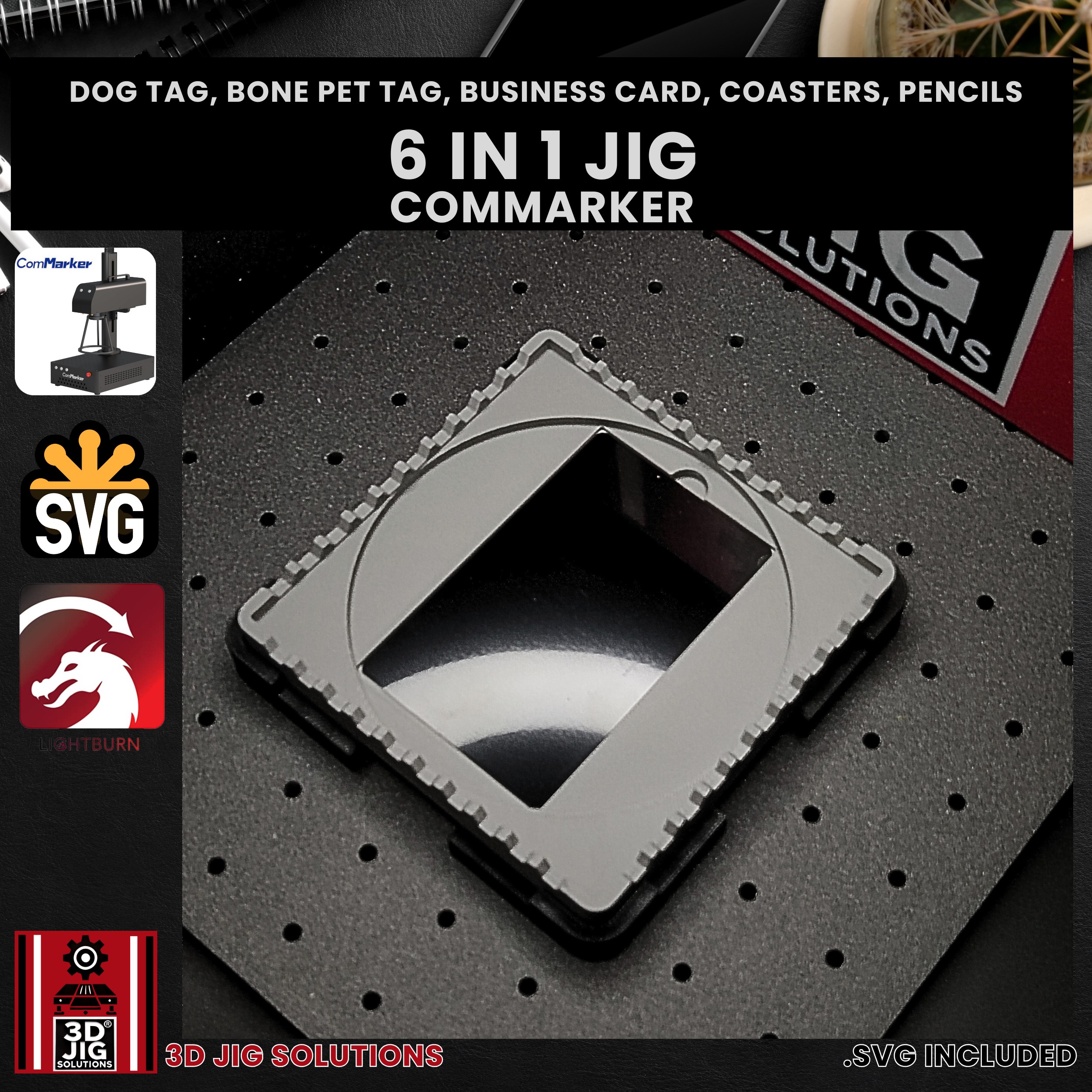 ComMarker 6-in-1 Laser Jig – Pet Tags, Military Tags, Metal Cards, Coasters & Hex Pencils