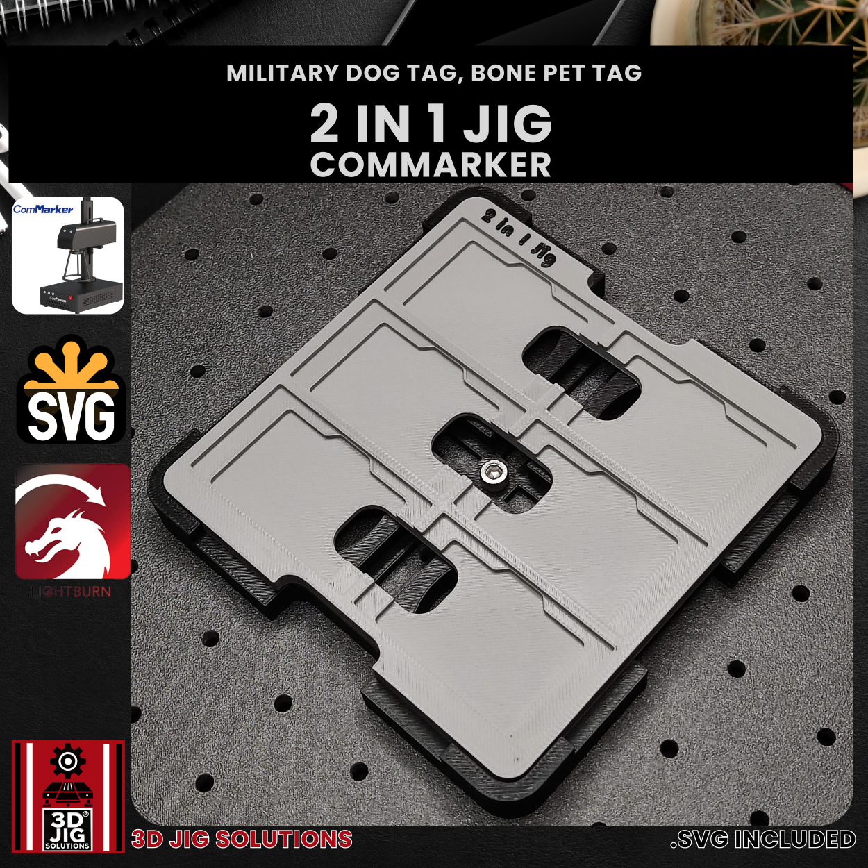 Unlock your creativity with the ComMarker 2-in-1 Jig. The perfect laser engraving tool for crafting custom bone pet tag IDs and military dog tags with ease using your ComMarker laser. Designed for versatility, this laser engraving jig accommodates both UV and fiber lasers, ensuring precision and efficiency in every project.