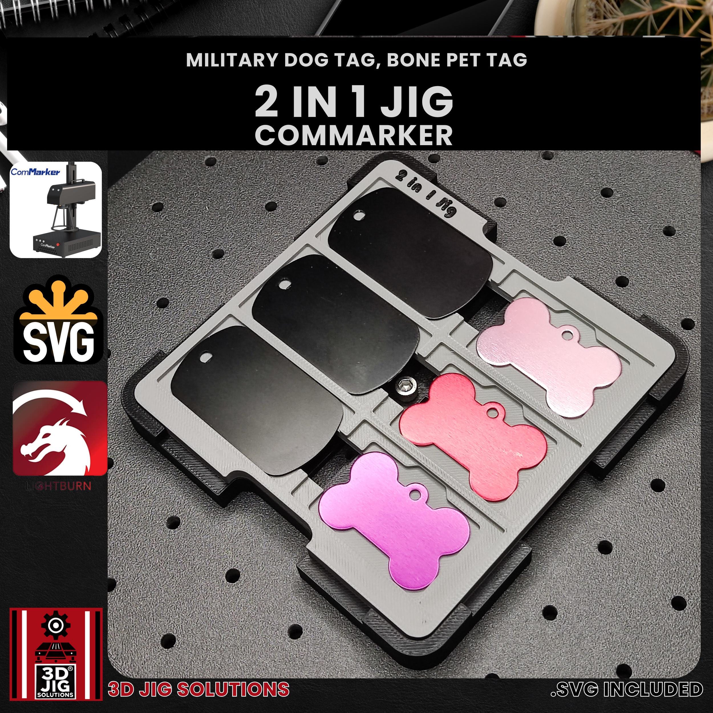 Streamline your engraving projects and achieve professional-quality results on bone pet tags and military dog tags with the 2-in-1 Jig from 3D JIG Solutions, ideal for use with your ComMarker.