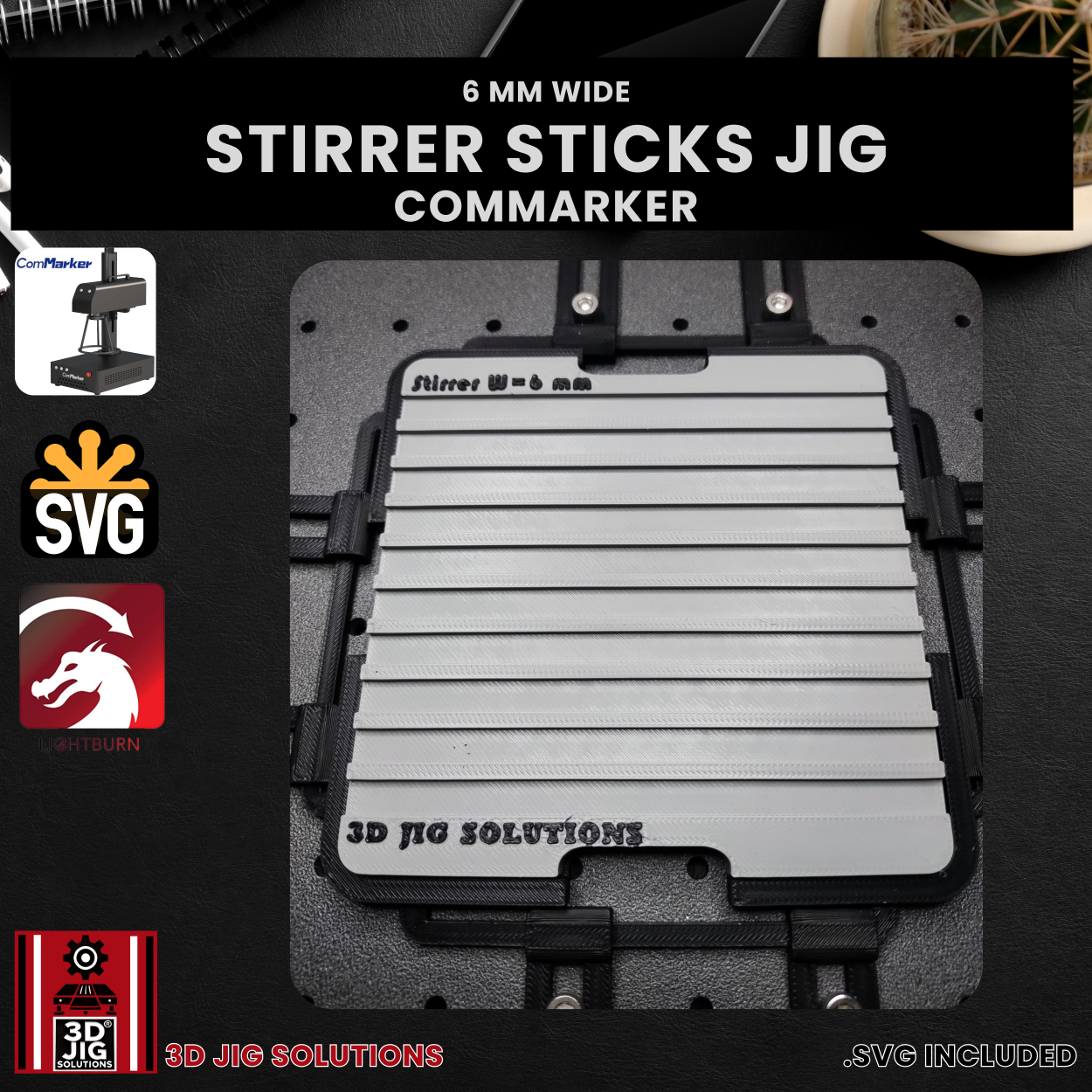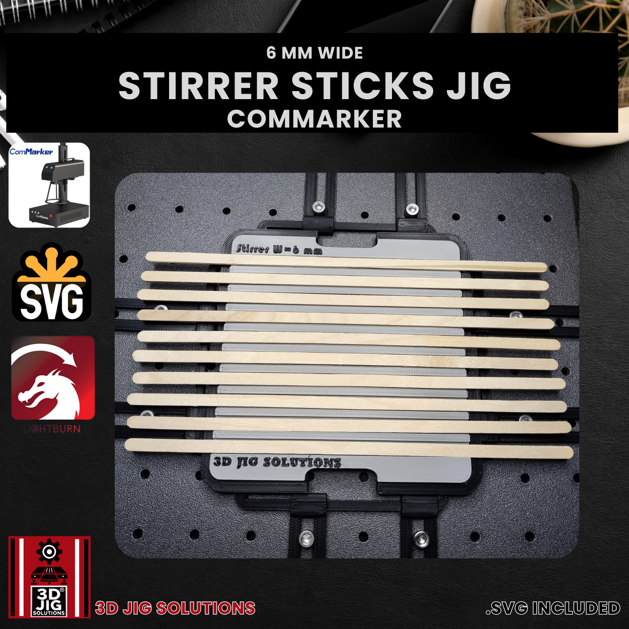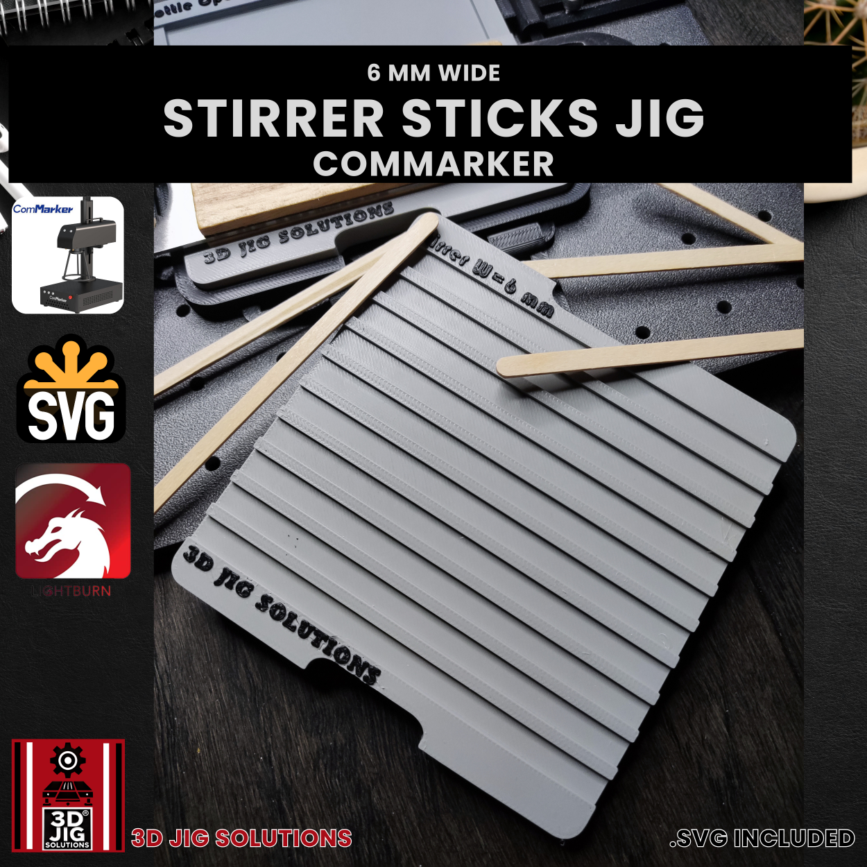 Enhance your engraving capabilities for small wooden items with the Coffee Stirrer Jig from 3D JIG Solutions, the perfect tool for creating personalized wood stirring sticks with your ComMarker laser.