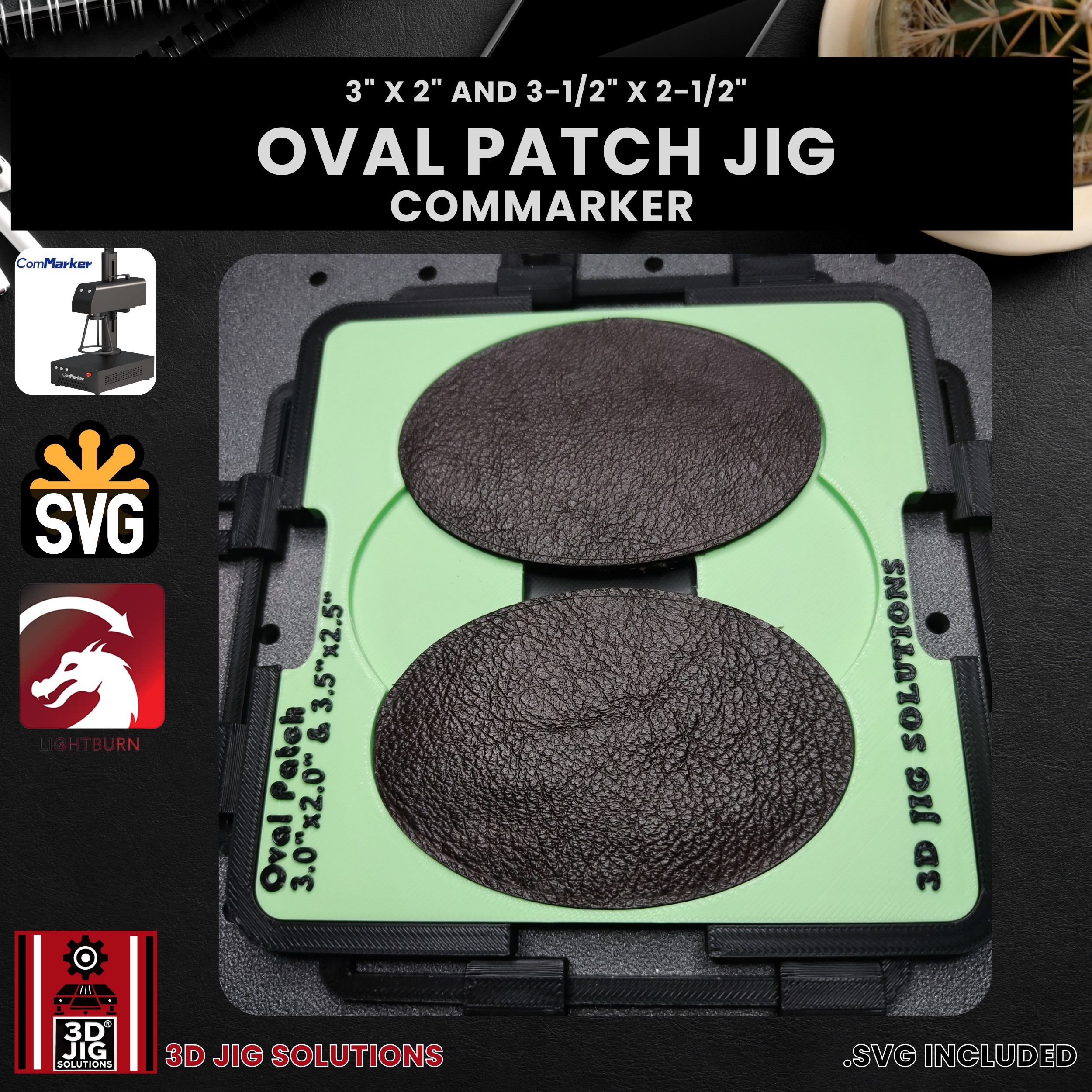 - Accommodates Two Sizes: Custom-designed to securely hold both 3″ x 2″ and 3-1/2″ x 2-1/2″ oval leather patches for precise engraving with your ComMarker laser.