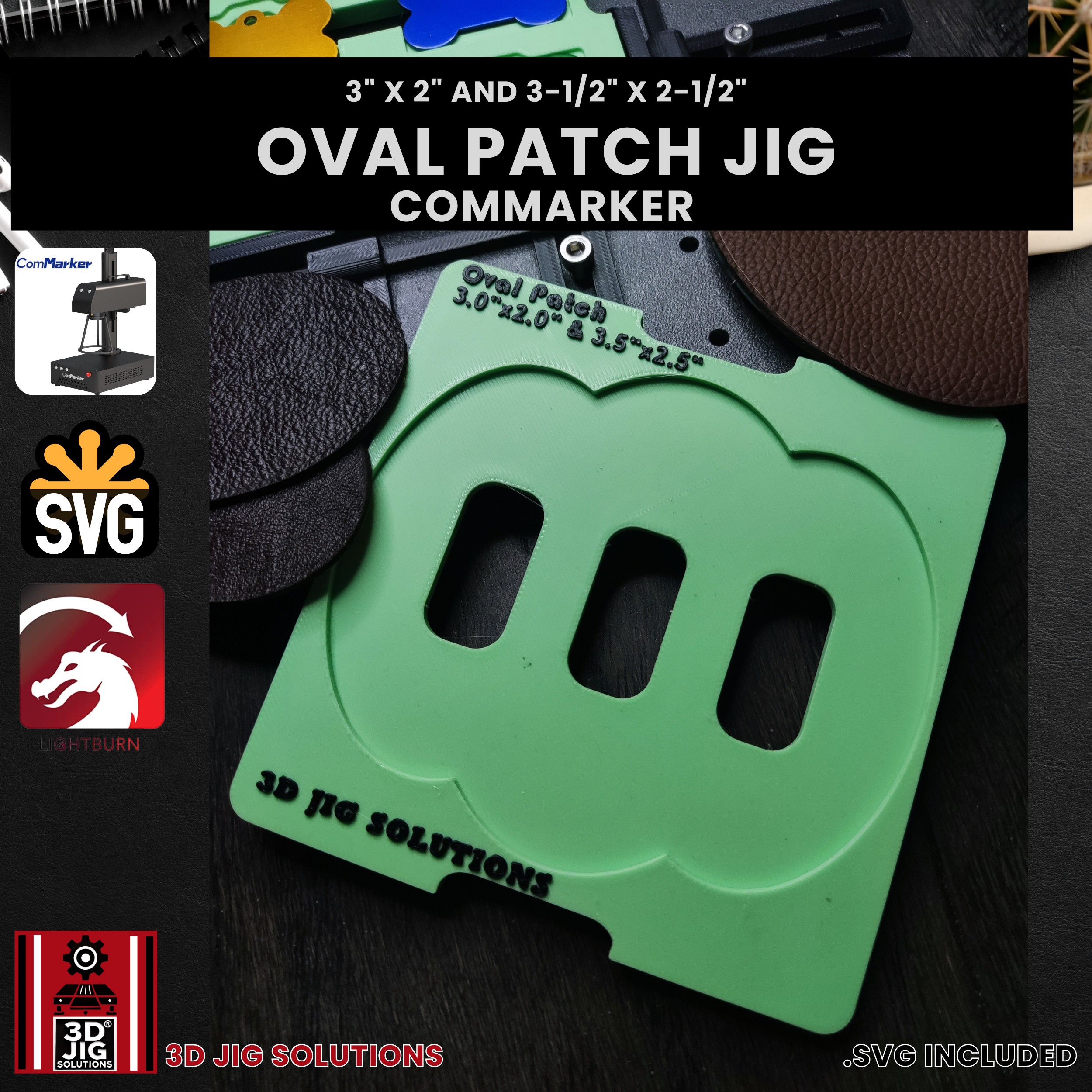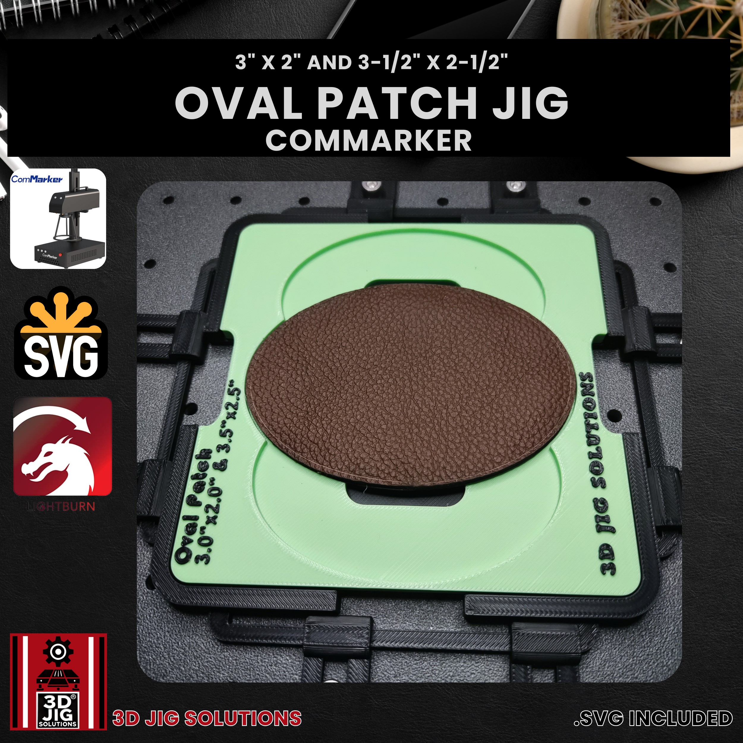 Elevate your laser engraving precision and efficiency with the Oval Patch Jig from 3D JIG Solutions—perfect for small business owners, hobbyists, and professional crafters using the ComMarker.