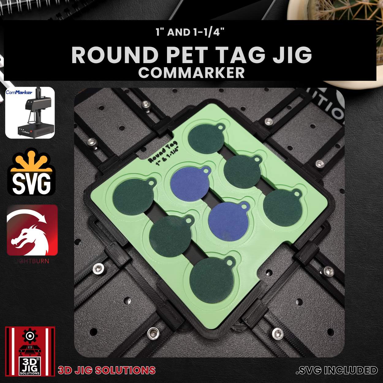 Enhance your precision and efficiency in pet tag engraving with the Round Pet Tag Jig from 3D JIG Solutions—the perfect accessory for all ComMarker users looking to create professional-quality pet IDs.