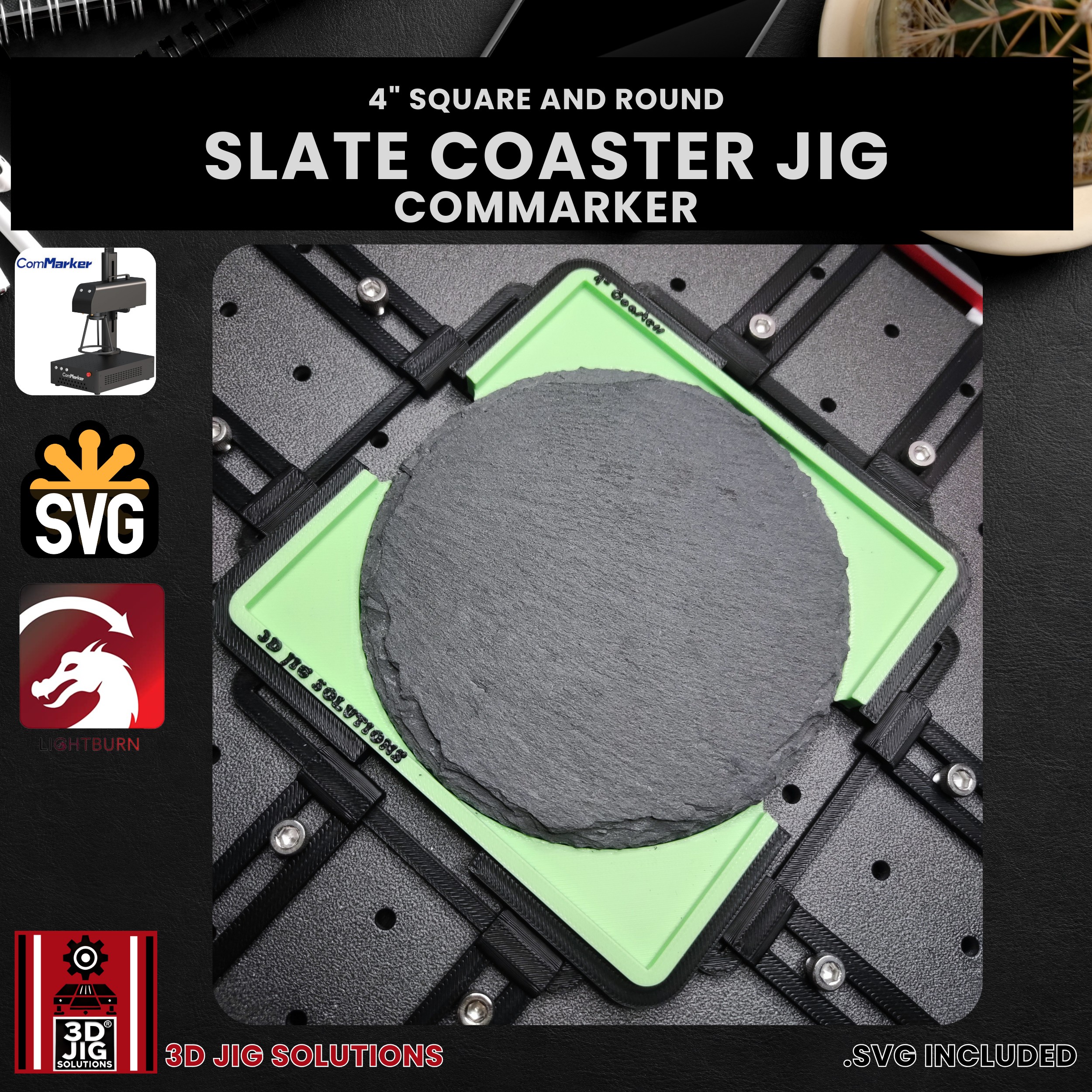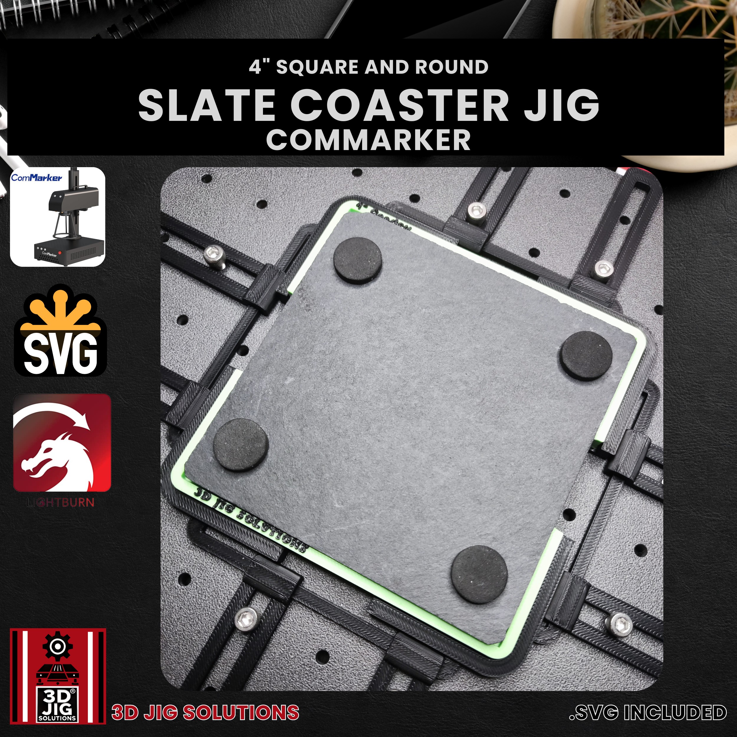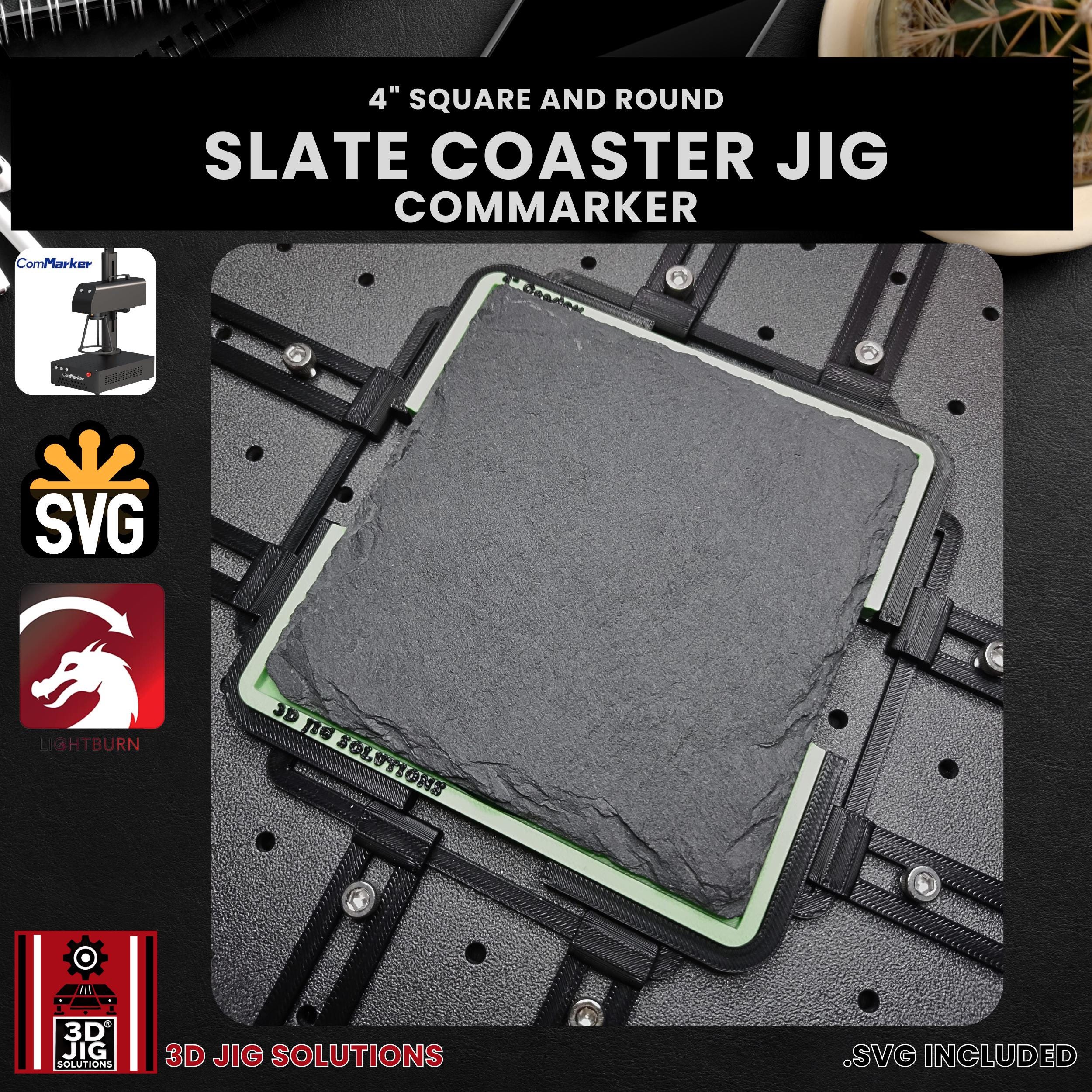 Effortlessly engrave your slate drink coasters using our 3D Printed Slate Coaster Jig, specifically designed for the ComMarker laser engraver! This precision jig securely holds standard 4-inch (101.6mm) round and square slate coasters. Consequently, you can ensure perfect alignment and achieve professional-grade engraving results for all your coaster personalization projects.