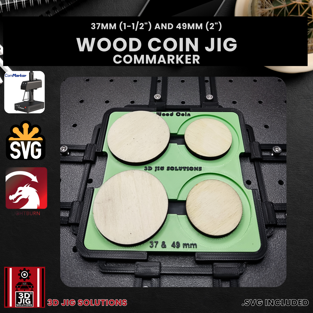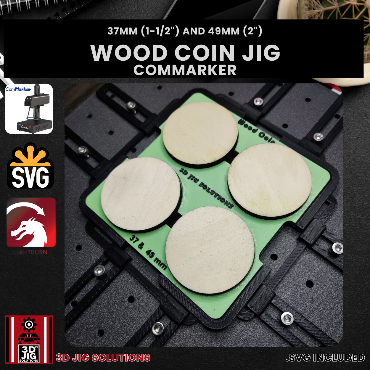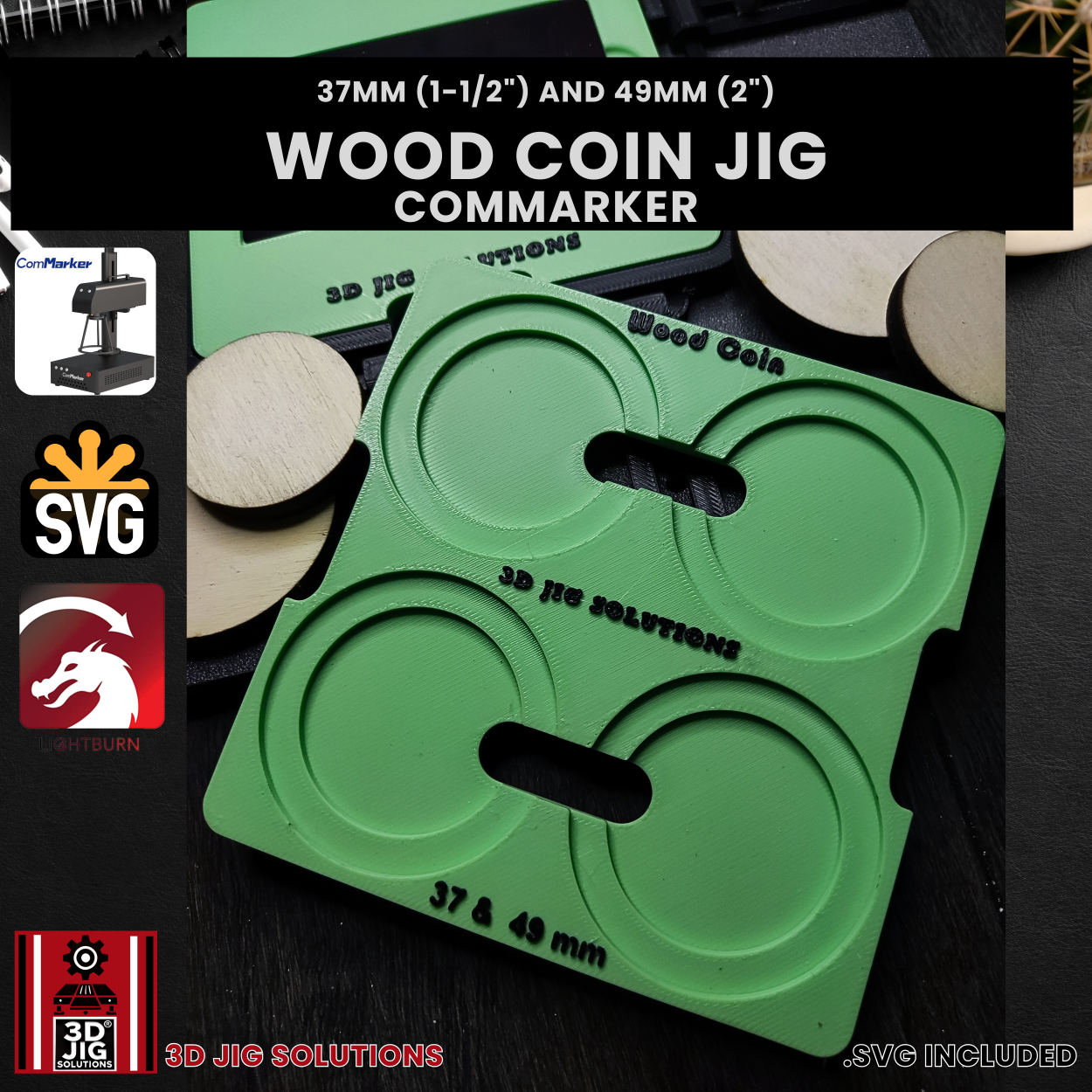 Enhance your precision and efficiency in wooden coin engraving with the Wood Coin Jig from 3D JIG Solutions—the ideal accessory for ComMarker users looking to create professional-quality wooden tokens and challenge coins.