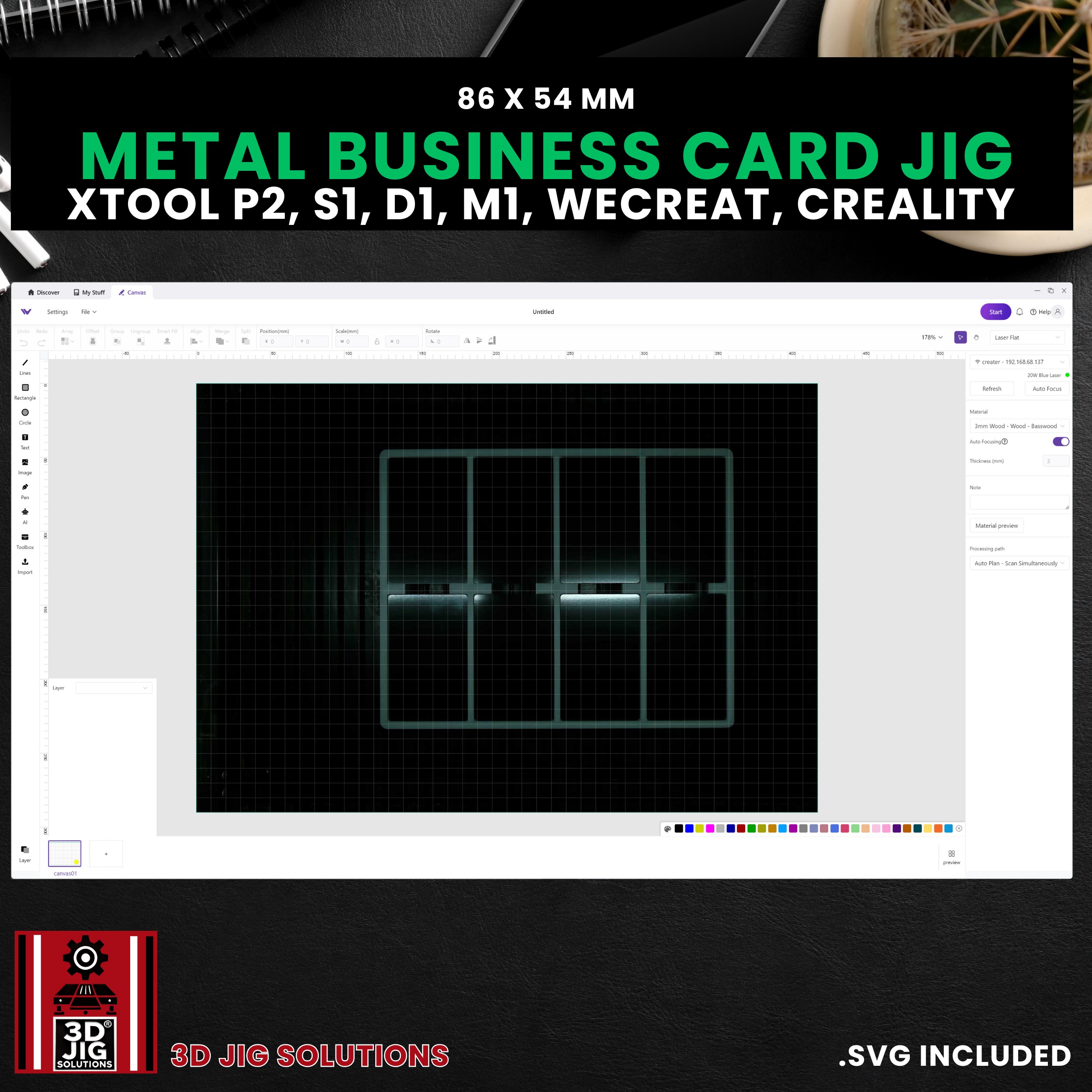 - Precise Alignment: Custom-sized to securely hold up to eight standard 86 x 54mm metal business cards, ensuring accurate and repeatable laser engraving with your Diode or CO2 laser.