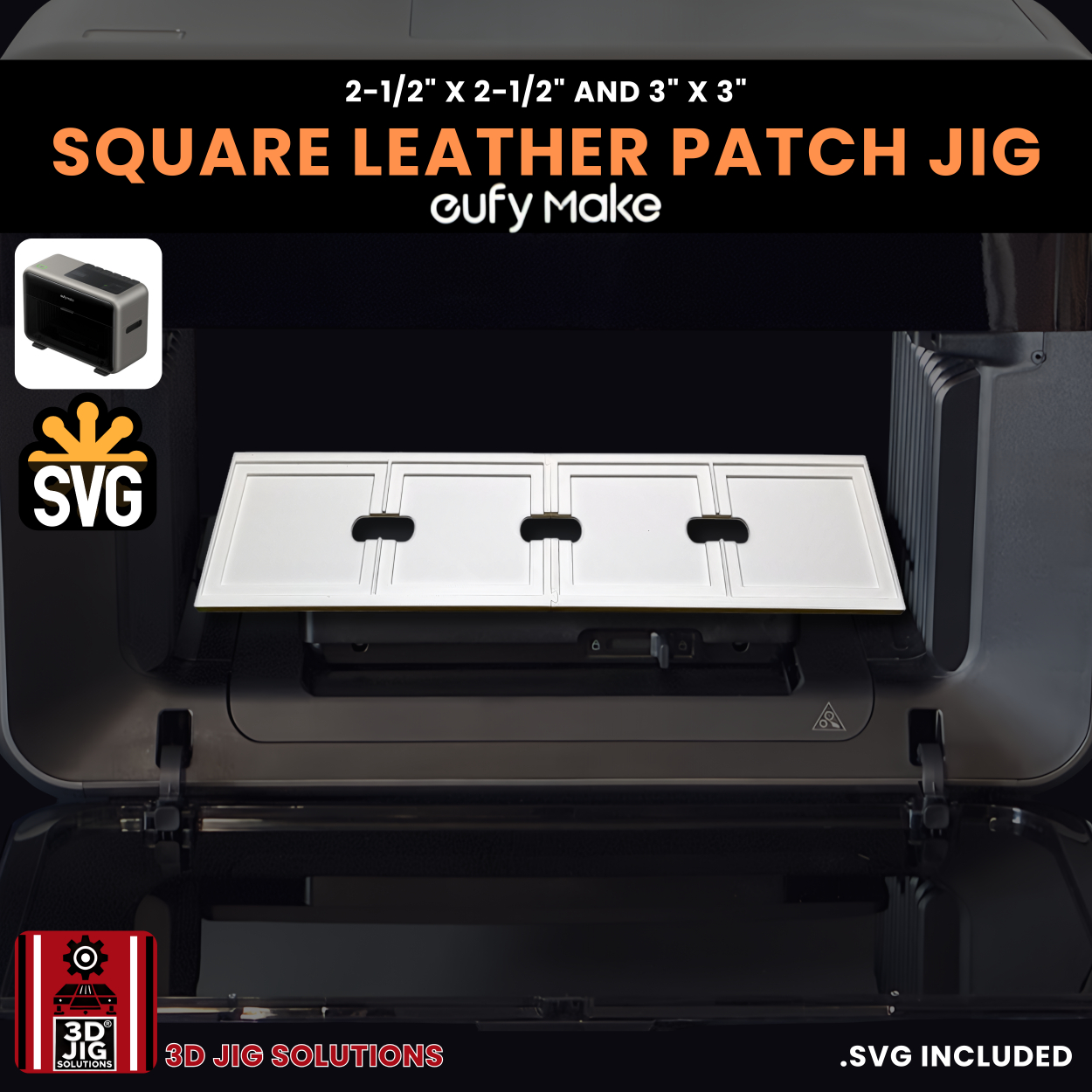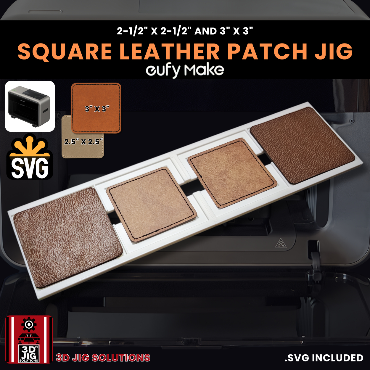 - One 3D Printed Square Patch Jig: We custom-sized this jig to hold square leatherette patches measuring 2-1/2″ x 2-1/2″ and 3″ x 3″.