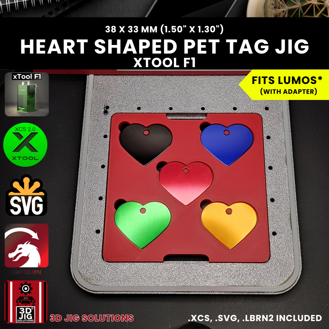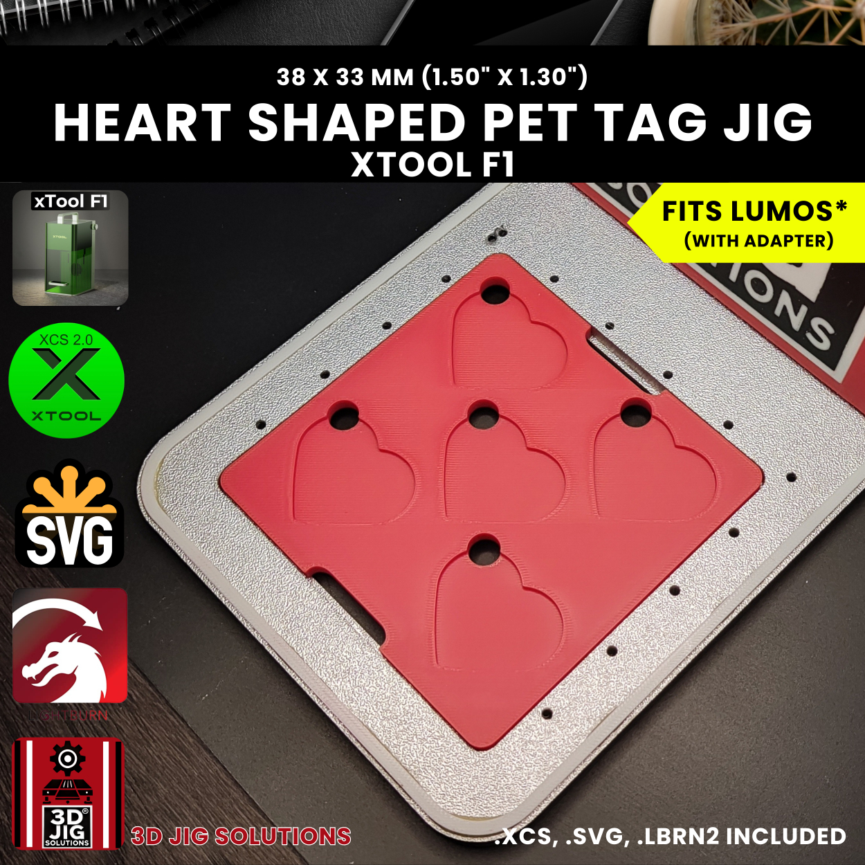 Ready for a custom solution? We specialize in creating custom laser jigs for any size or shape. Message us to discuss your unique needs and get a quote for a custom xTool F1 heart pet tag jig!