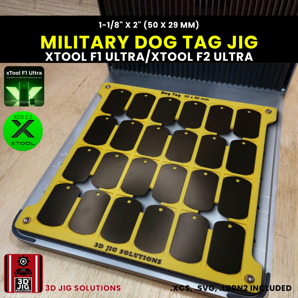 deal for creating personalized dog tags for military personnel, pets, or promotional items, this jig is compatible with xTool Creative Space (XCS) and other design software like Lightburn. This streamlines your workflow and drastically improves accuracy, allowing you to achieve professional-grade results on metal tags with your xTool F1 Ultra’s fiber laser.